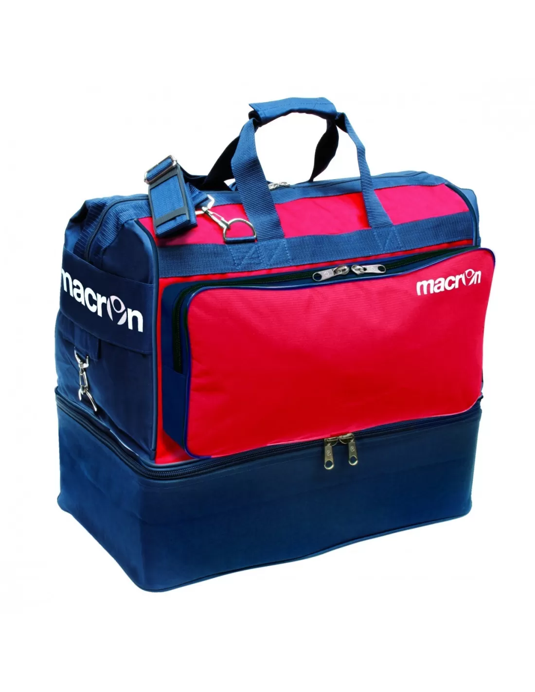 Il Borsone con fondo rigido Macron TOPEKA MEDIUM, ha dimensioni di 46x43x24h. e Zip rinforzate da 12 mm. con moschettoni di metallo.
